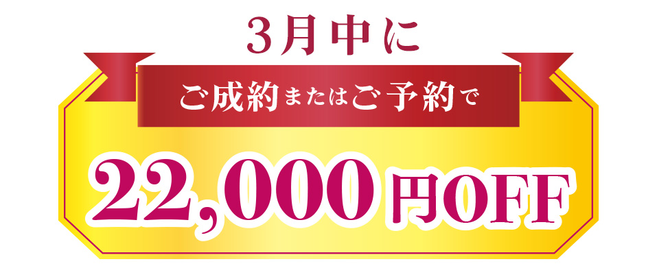 ご成約 または 事前ご予約で 22,000円OFF